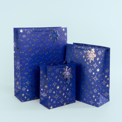 Пакет подарочный, 210гр, Сверкающие звезды, Металлик, 23*18*10 см