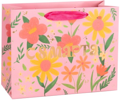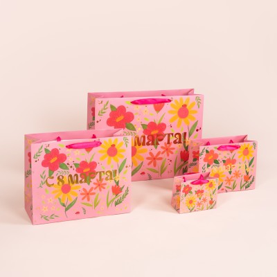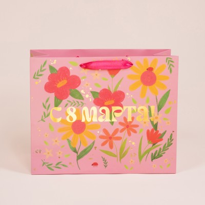 Пакет подарочный, 210гр, 8 Марта, Яркие цветы, Металлик, 11*14*7 см