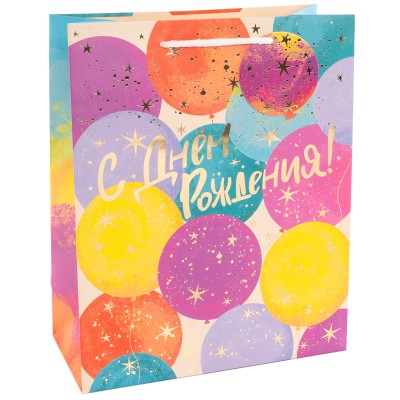 Пакет подарочный, 210гр, С Днем Рождения! (воздушные шары), Металлик, 32*26*12 см