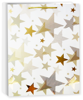 Пакет подарочный, 210гр, Мириады звезд, Белый, Металлик, 32*26*10 см
