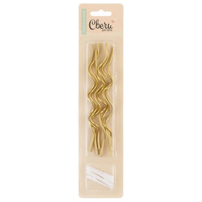Свечи Коктейльные, Тонкие спирали, Золото, Металлик, 0,3*14,5 см, 6 шт. с держат.,