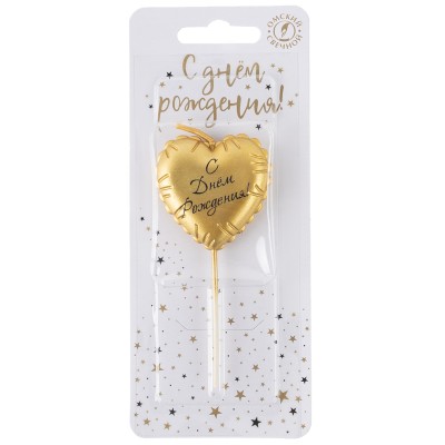 Свеча Сердце, Воздушный шар, на шпажке, Золото, Металлик, 1 шт.