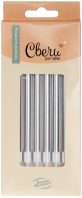 Свечи Серебро, Металлик, 0,6*8 + 4 см, 10 шт. с держат.