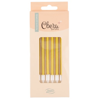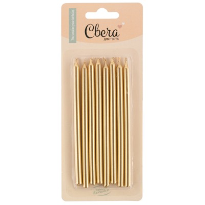 Свечи Золото, Металлик, 0,6*12 см, 8 шт.