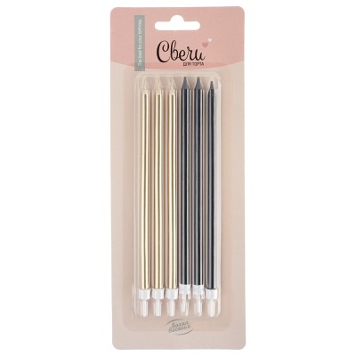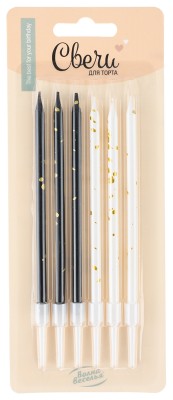 Свечи Золотые искры, Черный/Белый, Металлик, 6 шт. с держат.