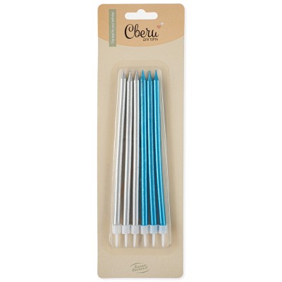 Свечи Синий/Серебро, Металлик, 0,6*14 + 2 см, 6 шт. с держат.