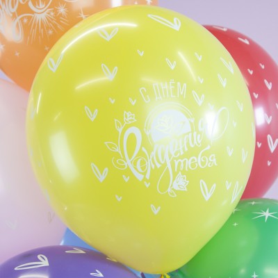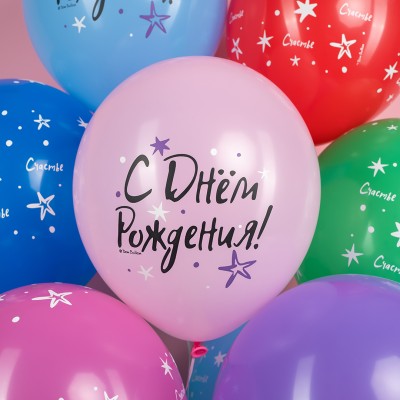Шар (12''/30 см) С Днем Рождения, Ассорти, пастель, 5 ст